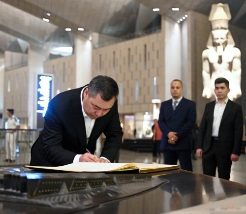 В завершение визита Садыр Жапаров оставил запись в книге почетных гостей музея, выразив благодарность египетской стороне за тепплый прием и возможность прикоснуться к истории великой цивилизации.